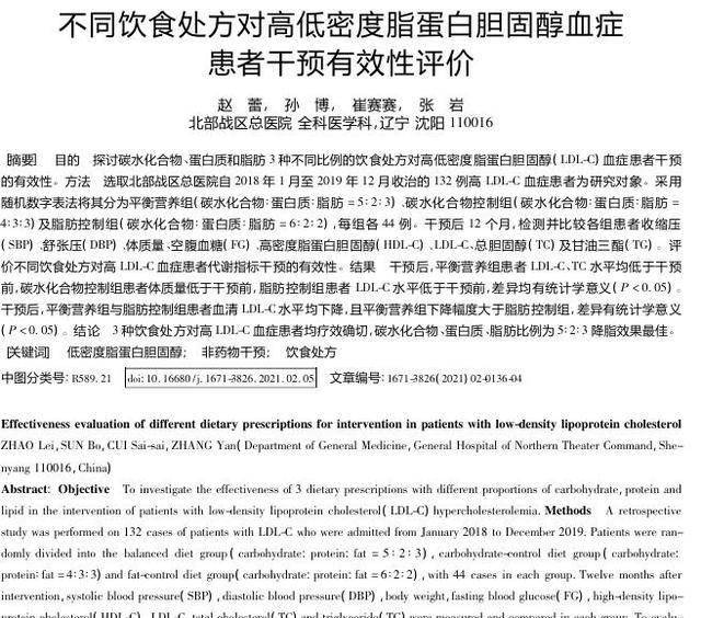 [1]赵蕾,孙博,崔赛赛,等.不同饮食处方对高低密度脂蛋白胆固醇血症患者干预有效性评价[J].临床军医杂志,2021,49(02):136-138+142.