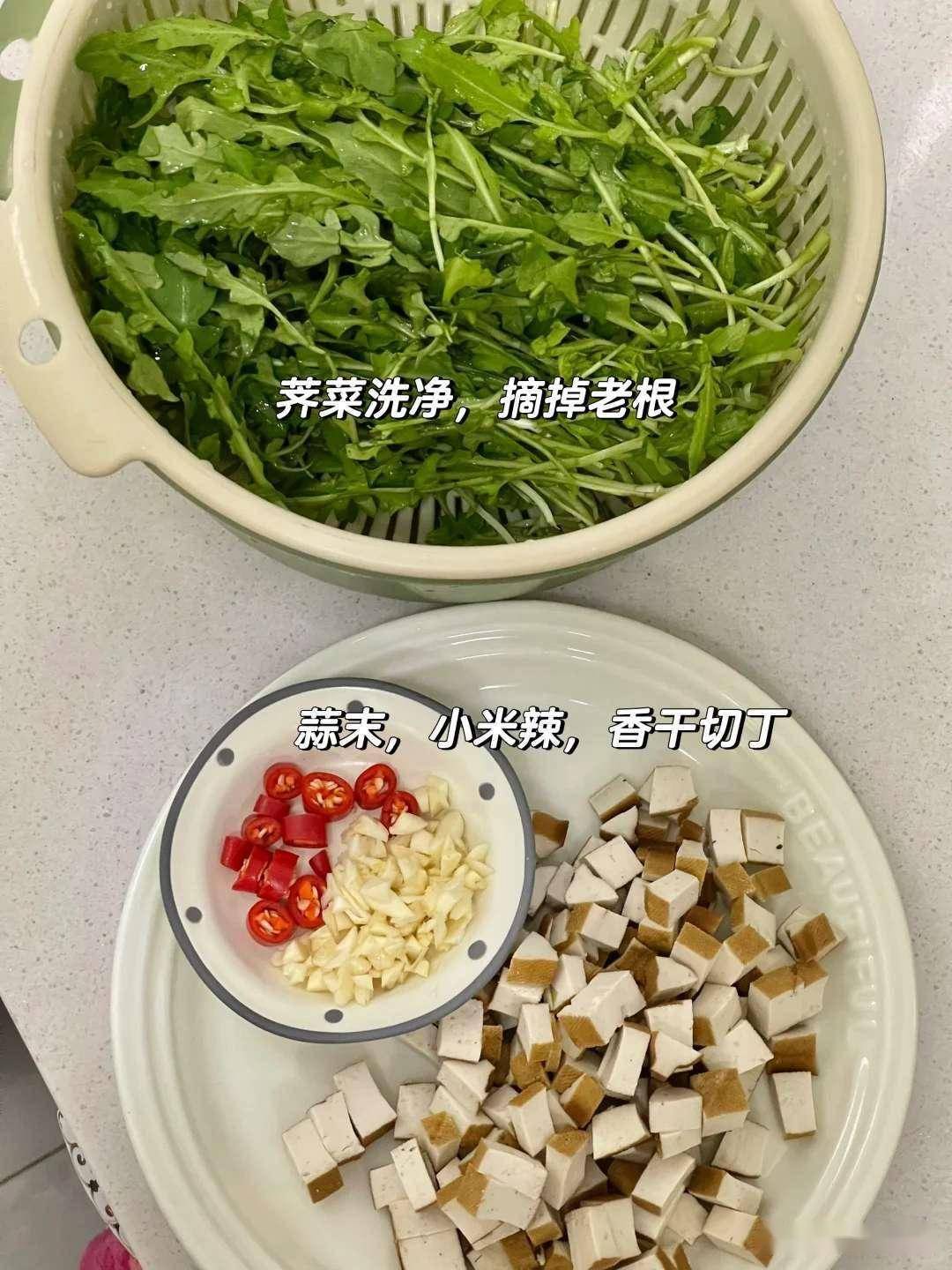 关键技巧:荠菜要快速焯水保持脆嫩,豆干切丝更入味,这样做出来的凉拌菜才够鲜。