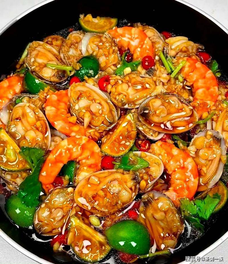 5. 把调好的料汁倒入装有虾、蛏子等食材的容器中,拌匀即可享用 。