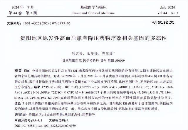 [1]邹文兵.贵阳地区原发性高血压患者降压药物疗效相关基因的多态性, 基础医学与临床, 2024-06-28