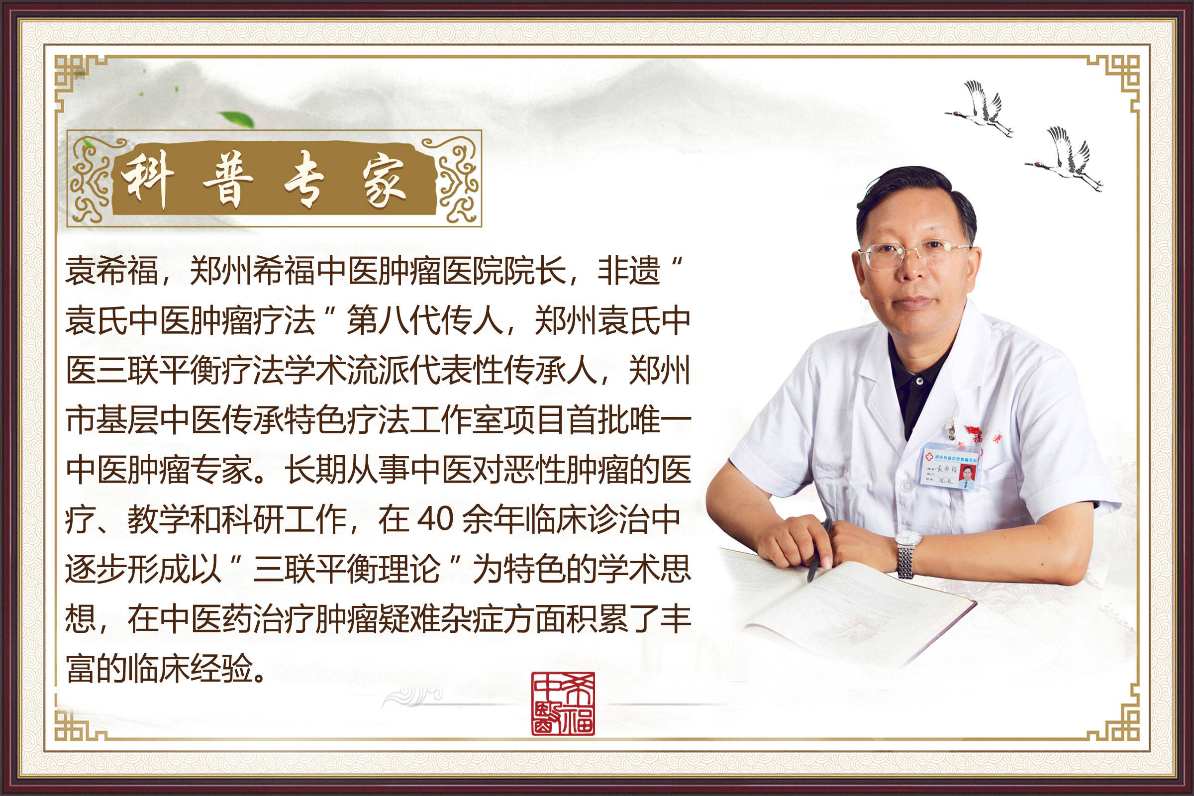 目前,临床上常使用多种方法综合治疗的手段来减轻对患者的伤害,提升治疗效果,其中中西医的综合治疗备受人们关注,尤其是中医在综合治疗中占据了重要的地位,作为一家特色中医肿瘤医院,郑州希福中医肿瘤医院自建院以来,一直秉承“用炎黄医术庇佑炎黄子孙”的大愿,坚持以中医肿瘤治疗为本,突出中医药特色优势,不断提高医院学术水平和诊疗能力,是“非物质文化遗产——袁氏中医肿瘤疗法”保护单位、“郑州袁氏中医三联平衡疗法学术流派”建设单位、“郑州市基层中医传承特色疗法工作室”项目首批唯一中医肿瘤医院,为早、中、晚期患者提供中医系统方案及健康指导,力求帮助癌症患者减轻痛苦,提高生存质量,累计诊疗患者超20万人次。