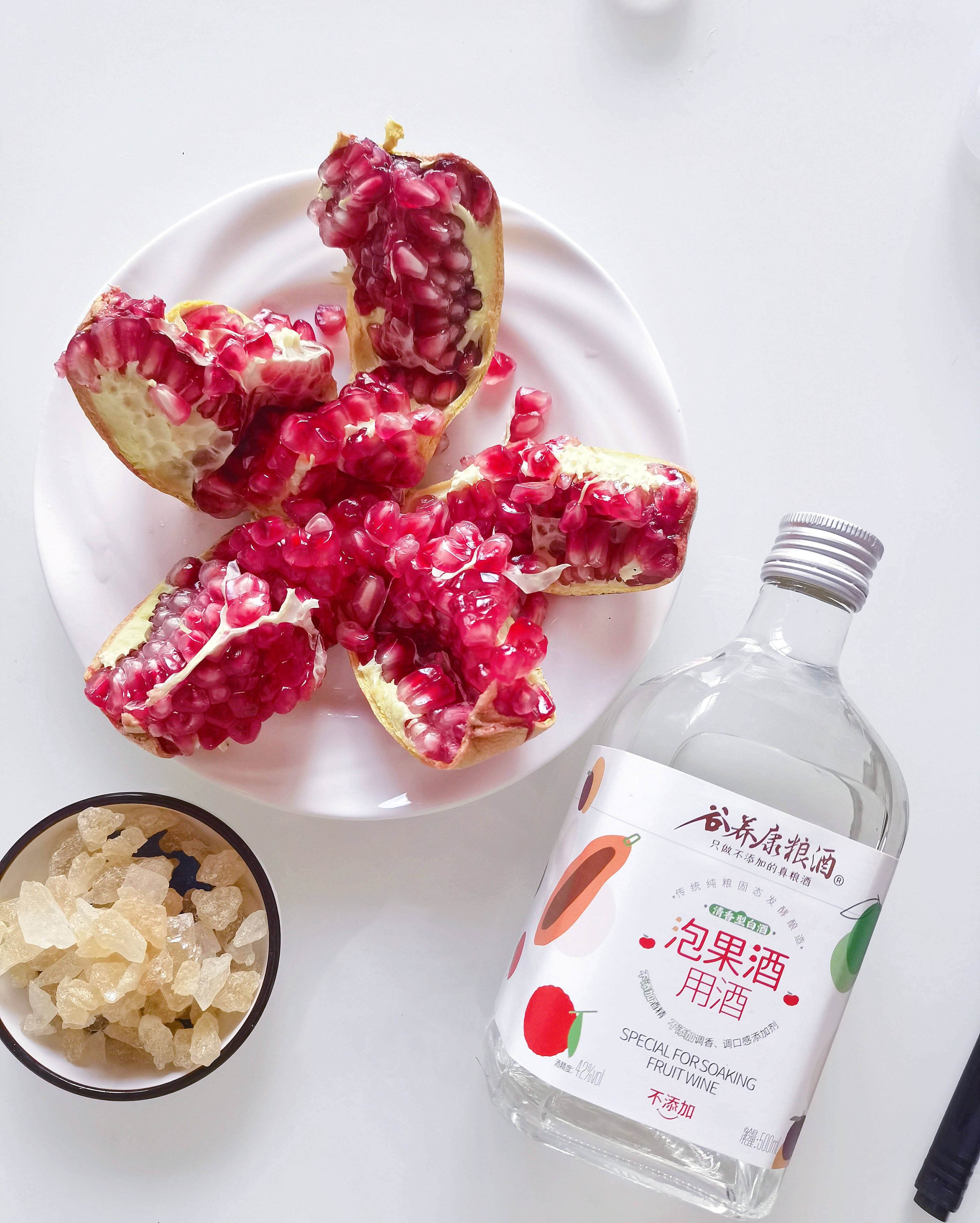 了解了这些泡酒的小常识后,我们就可以开始制作石榴泡酒了。接下来,我会详细介绍石榴泡酒的比例和制作步骤。