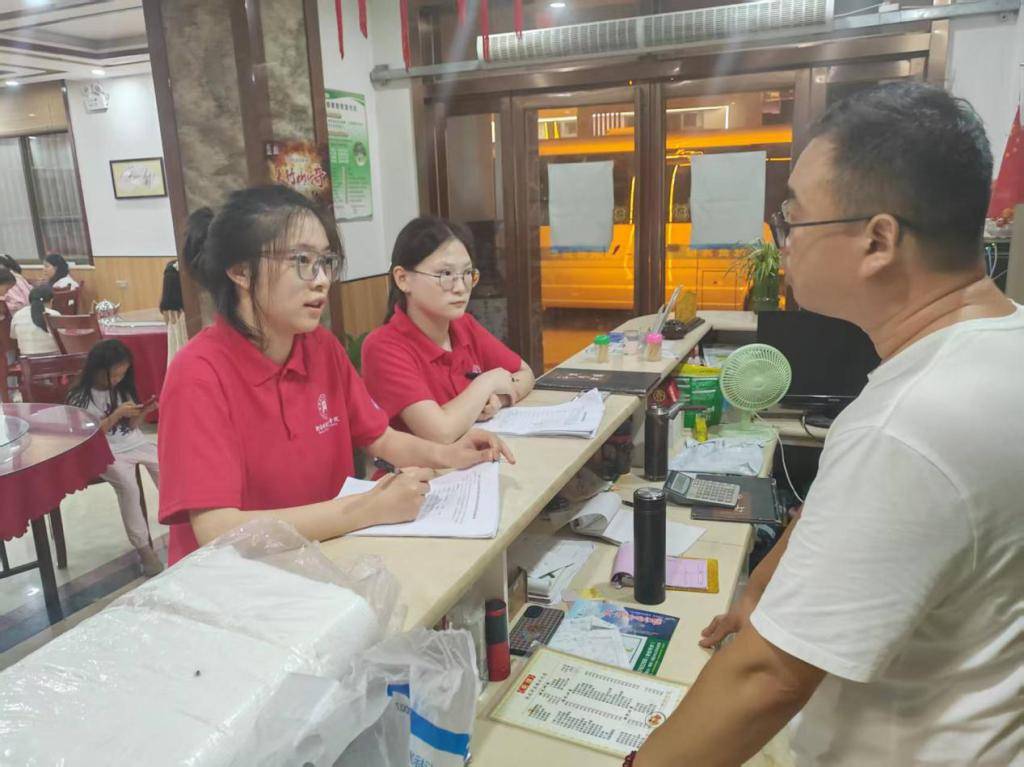 (实践队员对南坪景区民宿经营者进行岗位调研并发放调查问卷)