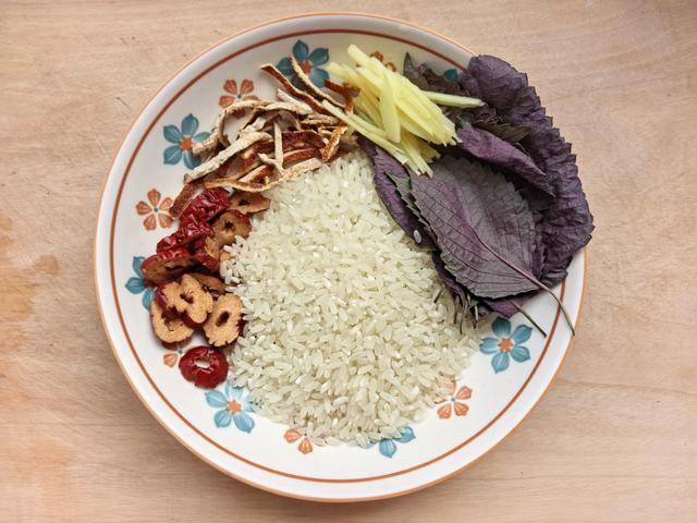 紫苏、陈皮、生姜、红枣、大米搭配在一起,可以健脾祛湿、提神醒脑、促进消化、缓解腹胀、化痰止咳、增强免疫力。