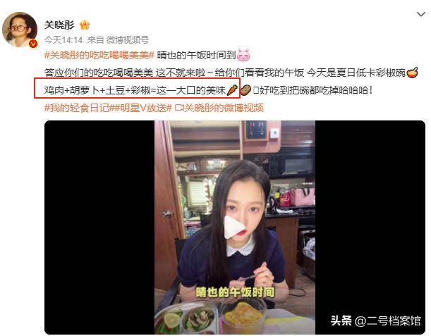 先来看看关小姐的午餐。光是配文就能感受到这餐饭的健康程度。一大半的“彩椒碗”,搭配鸡肉、胡萝卜和土豆,真是健康的一餐,乍一看确实少了些食欲。这样的素食减脂餐,土豆明显带有碳水,是否算真正的减脂,似乎还有待商榷,但吃了肯定能减肥。关晓彤吃得如此香,这可真是了不起,当然,这跟厨师的烹饪技巧也大有关系。