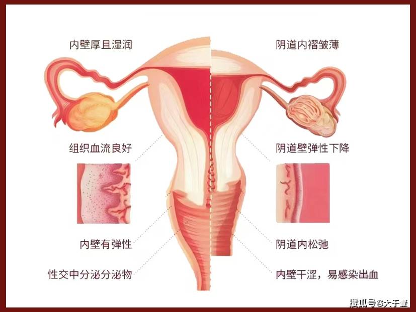 随着年龄增长,雌激素水平明显下降甚至消失,胶原蛋白流失严重,细胞老化,导致阴道粘膜萎缩、变薄、变脆,长期出现干燥、瘙痒、疼痛等不适症状。
