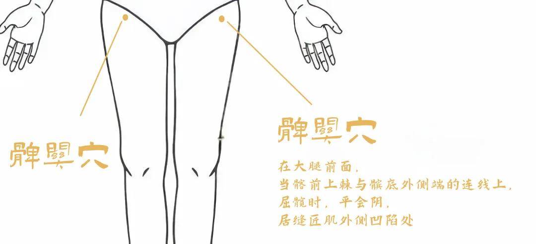 髀关穴(足阳明胃经之穴)是胃经中脾土微粒沉降之处,是小腹之阴与股前之阳交汇之处,是调节下肢胃经之总穴。