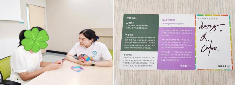 1.“情绪盒子”的故事:在李川主管护师的引导下,孩子们挑选代表不同情绪的彩色卡片,在安全、接纳的氛围中,讲述与这些情绪相关的“小故事”,并分享自己应对的方法。