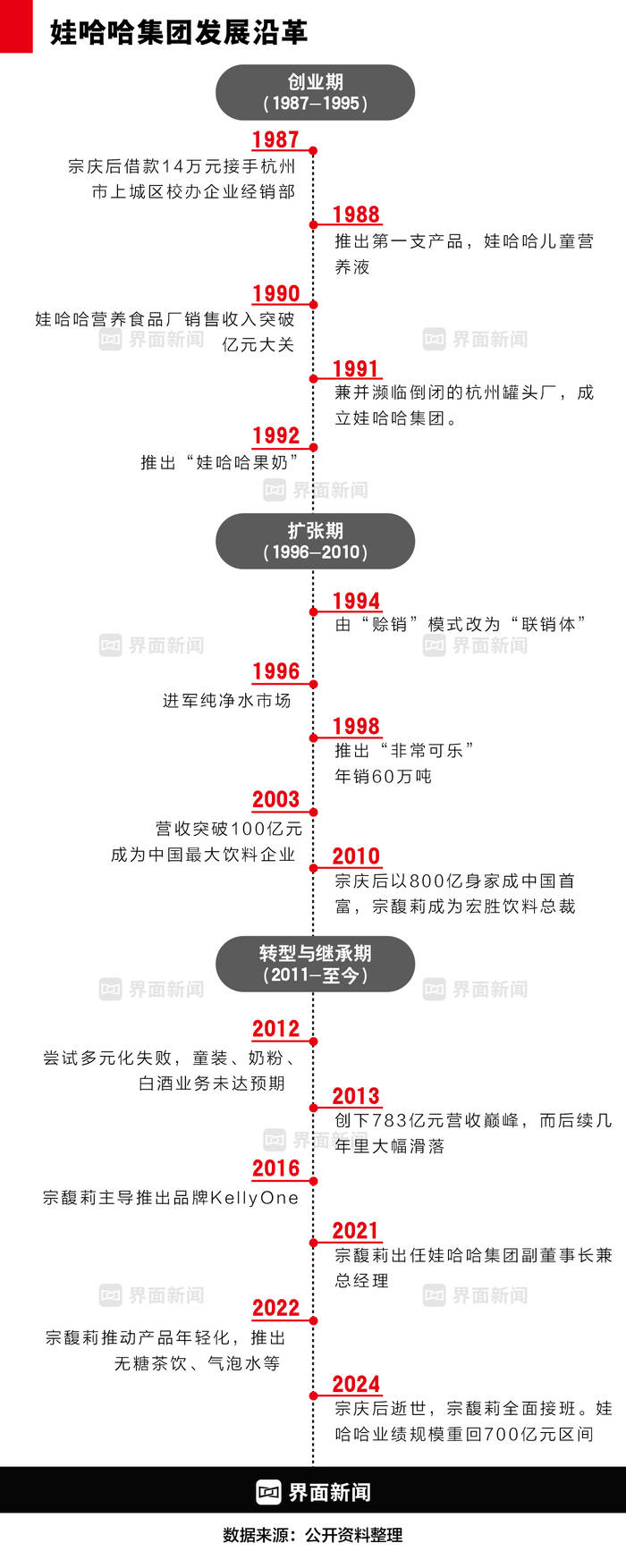 2024年,娃哈哈的业绩回到700亿的巅峰区间,但这样的业绩背后存在特殊因素。若宗馥莉要向员工、公众证明,自己真正为娃哈哈找到了一条重回增长的有效路径,则需要更长时间。