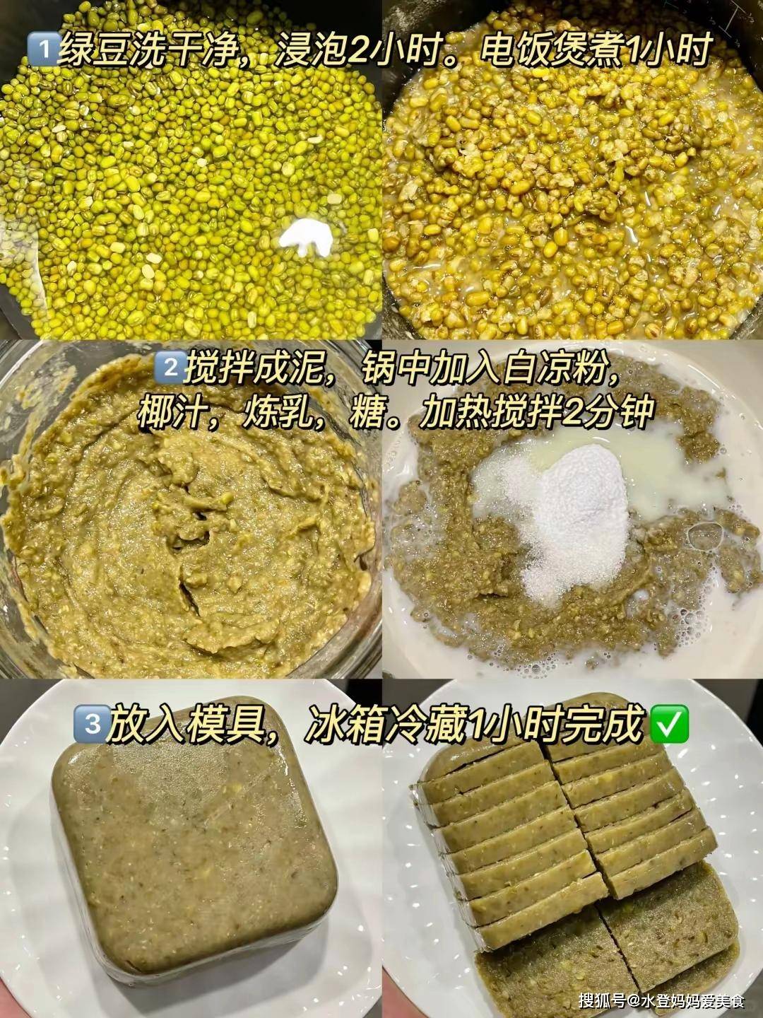 绿豆煮烂后取 200 克,加 100 毫升淡奶油、50 克白糖,搅拌至白糖融化,放凉后倒入雪糕模具,冷冻 6 小时以上。自制的绿豆雪糕无添加剂,绿豆味浓郁,冰爽解暑,是夏天的绝佳甜品。