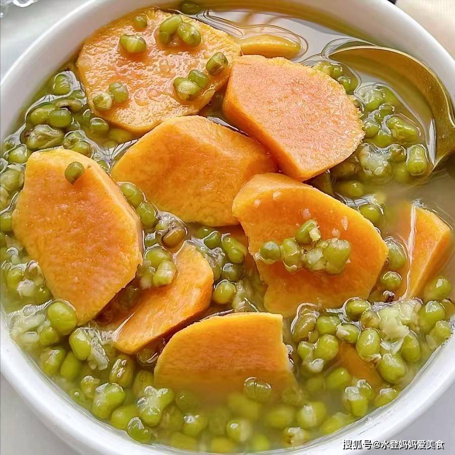 绿豆煮至半熟时,加入去皮切块的红薯,继续煮 20 分钟,至绿豆开花、红薯软烂。可根据口味加少许冰糖,红薯的香甜融入汤中,既有绿豆的清爽,又有红薯的绵甜,营养更丰富。