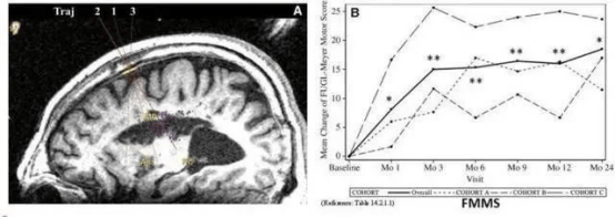 9名偏瘫患者接受人源神经干细胞脑内回输后,影像学显示植入区出现新的神经组织,证明其有一定临床益处。