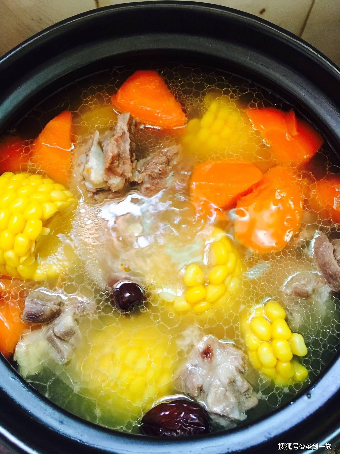 3. 将排骨、玉米、胡萝卜放入汤锅中,加入足量清水,大火烧开后转小火慢炖 1.5 - 2 小时。