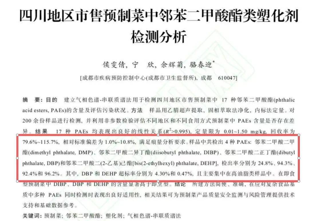 事实上,多地疾病控制中心对市售预制菜进行检测时,均发现不同程度的塑化剂残留。其主要来源,正是食品在存储和加工过程中,包装材料中的塑化剂逐渐渗入到食物之中。