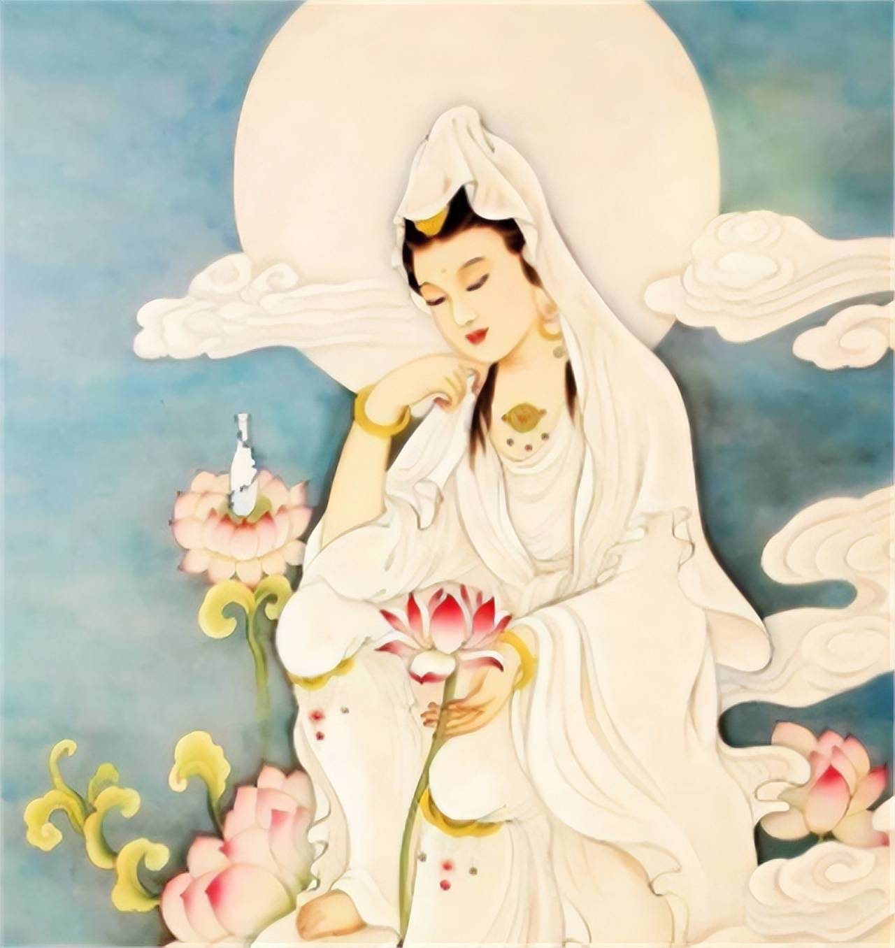 观音菩萨在中国有着丰富多样的形象:白衣观音、鱼篮观音、一叶观音等,皆寓意着她无处不在,随时随地救苦救难。这些形象拉近了观音与百姓的距离,让她成为最受民众欢迎的菩萨之一。