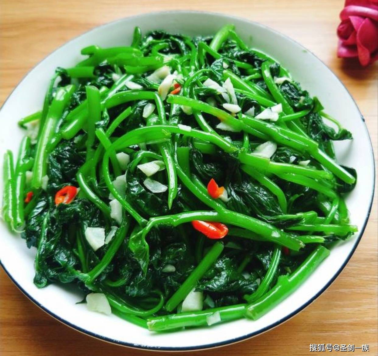 1. 准备食材:红薯叶摘洗干净,去除老叶和杂质,沥干水分。大蒜切成末,干辣椒剪成段备用(根据个人口味添加辣椒)。