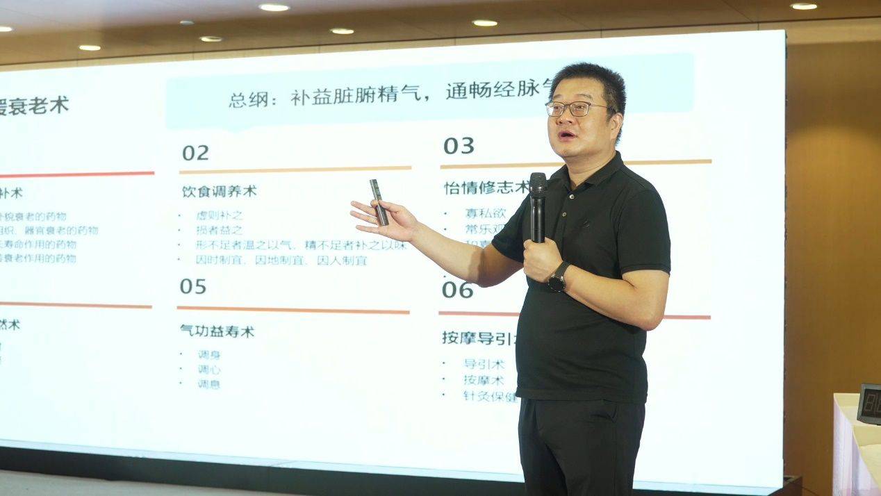 随后,南京中医药大学副教授、医学博士郝锋登台,给大家带来了一场主题为《衰老的认知与应对》的健康科普讲座。郝教授作为中国针灸学会腧穴分会常务理事、针推结合专业委员会常务委员、慢病管理委员会理事,在针药结合治疗慢性疾病以及养生康复领域颇有研究造诣。他用通俗易懂的语言,为老人们讲解了实用的养生保健知识,并且强调了科学抗衰老对于提升老年人群生活质量、防控常见慢性疾病的重要作用,现场掌声不断,大家纷纷表示受益匪浅。