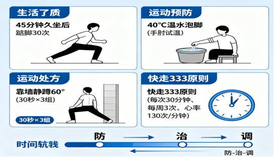 对糖友来说,“预防脚麻” 比 “治疗脚麻” 更重要,不用刻意安排大量时间,每天做好 4 件事就行:
