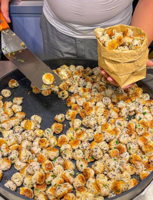 我迫不及待地夹起一个放入口中,轻轻一咬,“噗呲”一声,鲜美的汤汁瞬间在口中迸发开来,那浓郁醇厚的味道瞬间弥漫整个口腔。肉馅鲜嫩多汁,调料的香味恰到好处,与外皮的金黄酥脆形成了完美的搭配。外皮底部煎得焦香,咬起来“嘎吱”作响,而上面的部分则柔软劲道,带着淡淡的面香。