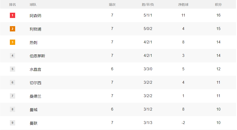当下热刺第三伯恩茅斯第四,前几名中目前只有暂居第五的水晶宫和暂居第八的曼城本轮未赛。此外曼联本轮获胜后暂时荣升第九。