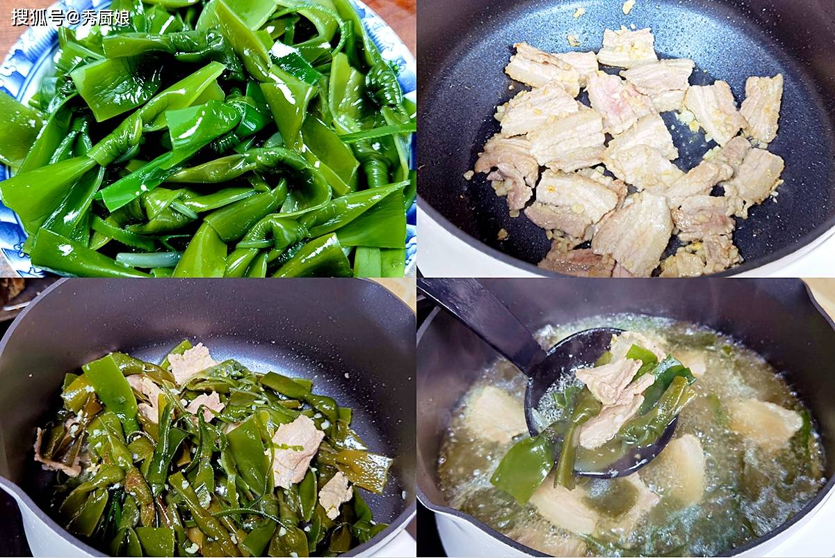 用五花肉的油脂来炖海带,汤味醇厚鲜美,海带吸饱了肉汁,软糯好吃,一点都不腥。