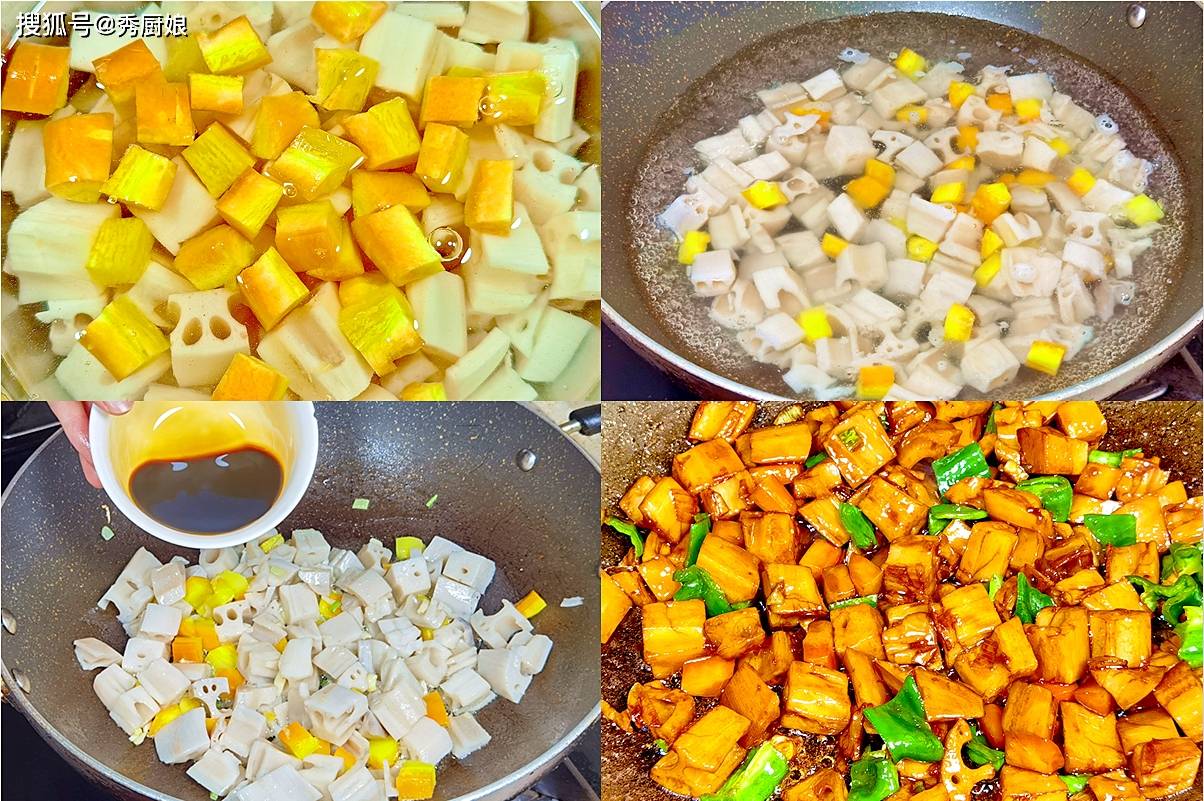 这道菜可是下饭神器!胡萝卜、青椒、莲藕都是秋天的时令蔬菜,搭配在一起颜色漂亮,营养也全面。