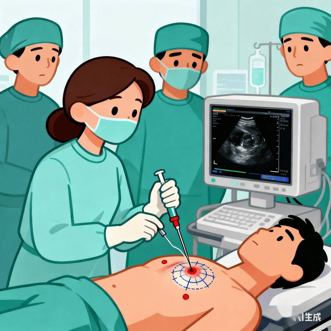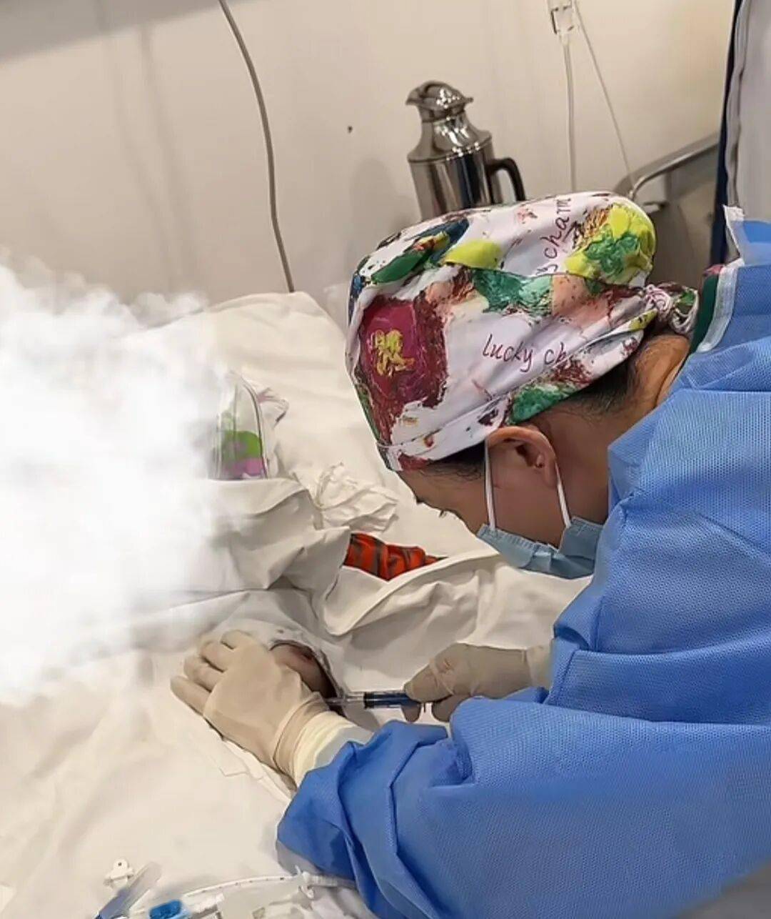 李主任抵达医院后,直奔病人床旁,在快速研判病情、确认超声影像后,她果断决策:准备物品,立即进行床旁心包穿刺引流,为被压迫的心脏“松绑”! 这是一项在毫米之间显真功的高风险操作,极度考验术者的经验、技术与心理素质。