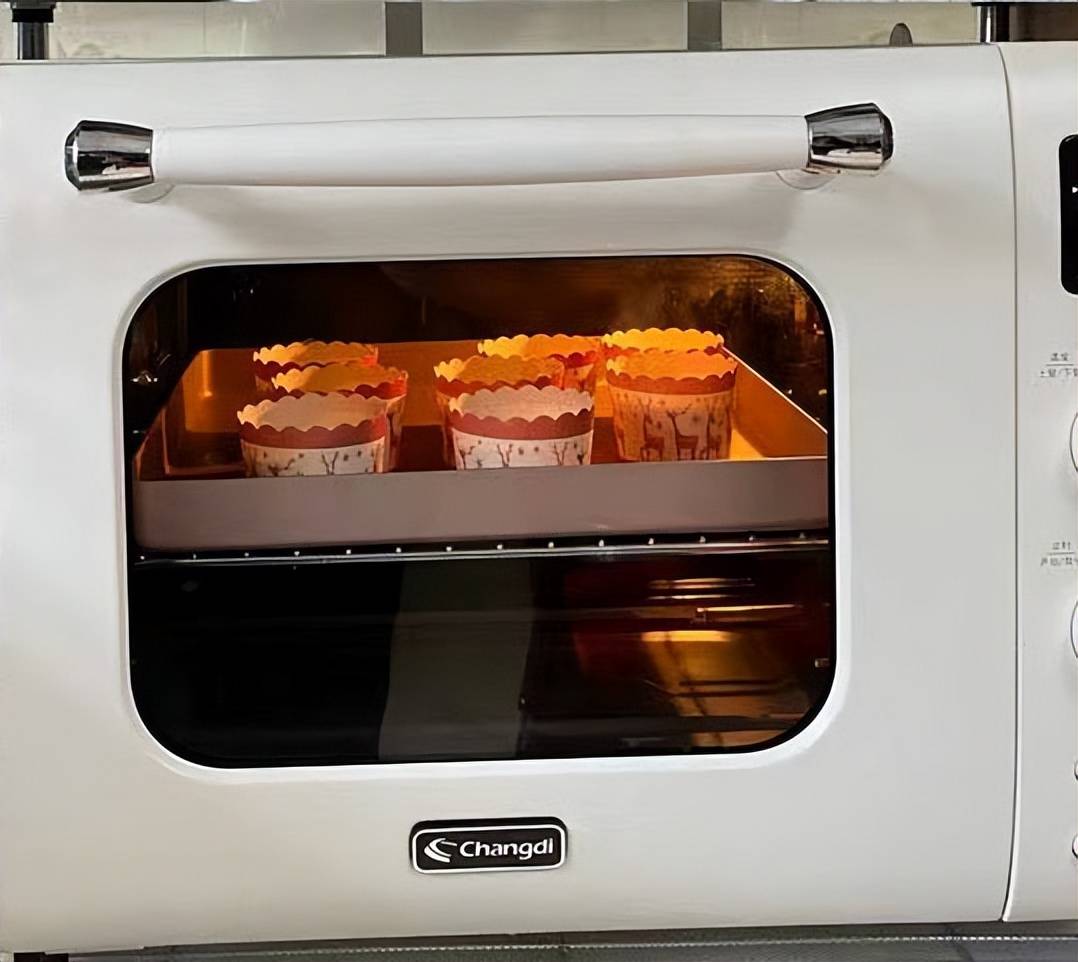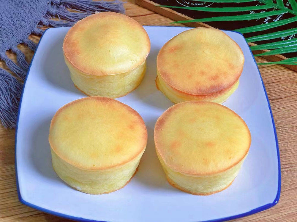 3、将其分别注入到纸杯里,七八分满的状态,端入烤箱。180度加热半小时,直到成型,体积膨胀,届时就熟了。奶香可口,软糯香甜。