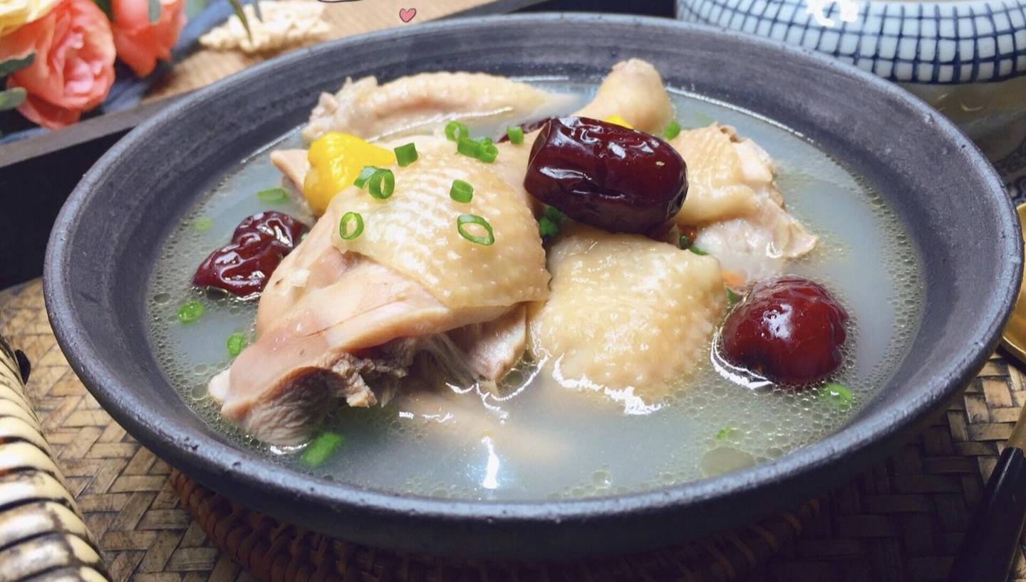 3、接着用小火炖一个钟头,再将板栗,枣放里边,煮四十分钟,最后加点盐,枸杞,葱花,即可出锅。