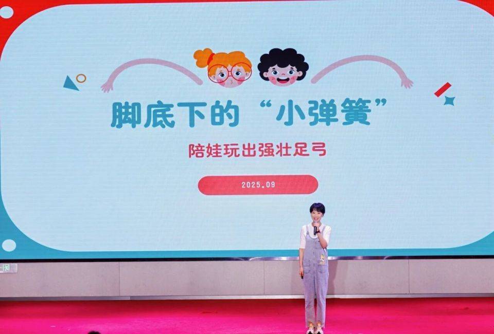 “大家光脚站立时,脚内侧是不是有一道弯弯的弧线?”来自平顶山市第一人民医院的魏迎东、徐梦瑶带来的《脚底下的“小弹簧”》,巧妙将足弓比作“弹簧”,生动揭示了在跑跳以及支撑行走方面的关键作用。现场更趣味十足,她们还演示了“脚趾抓毛巾”“钢丝行走”“踩石头过河”三项游戏,既能帮观众增强足弓力量,又能在互动中拉近亲子距离。