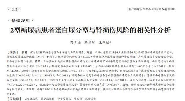 [1]孙冬梅,马拥军,王华斌.2型糖尿病患者蛋白尿分型与肾损伤风险的相关性分析[J].浙江临床医学,2024,26(08):1202-1205.