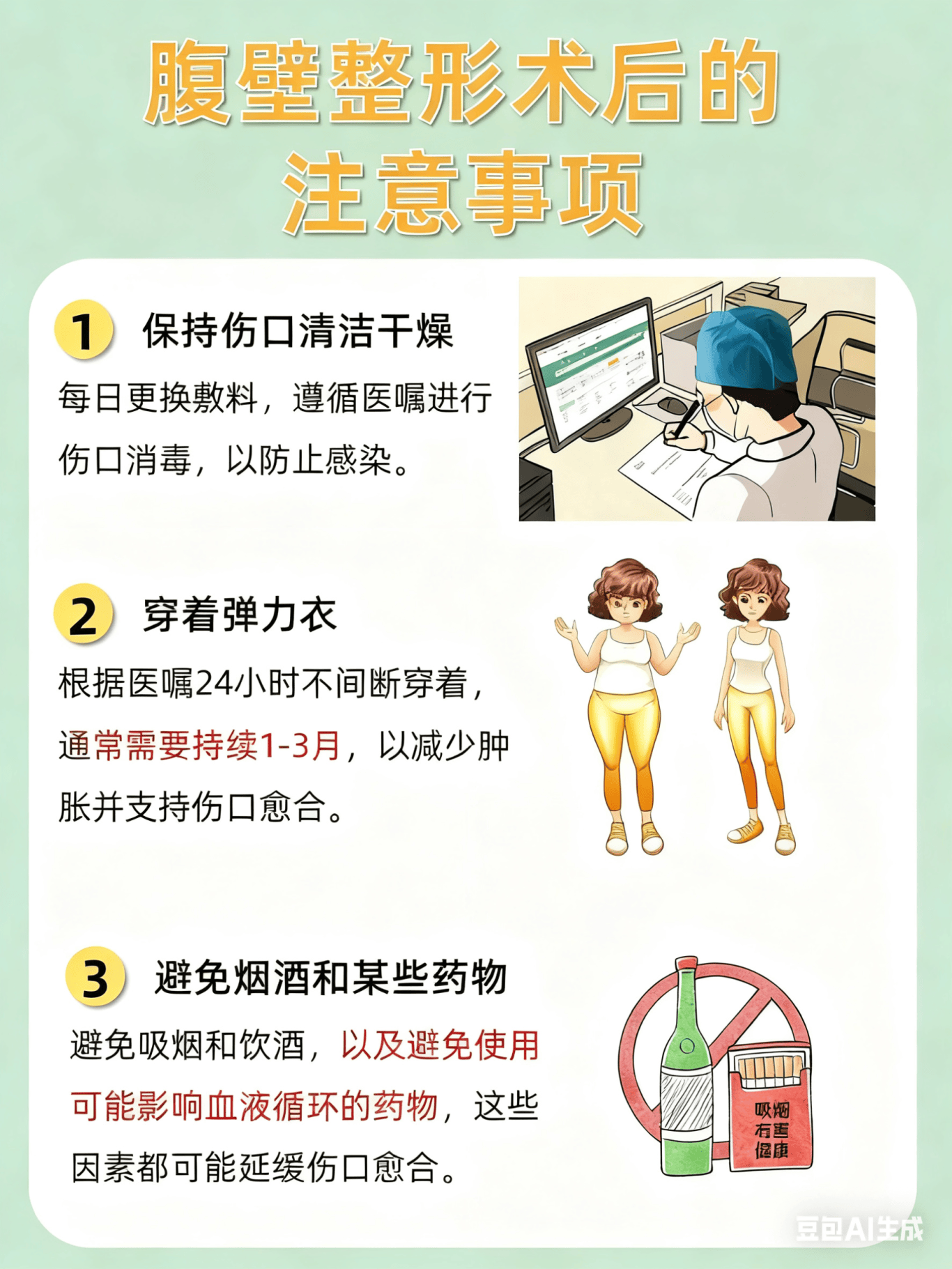 腹壁整形属于中大型手术,恢复期通常在1~3个月左右,术后护理对效果至关重要。