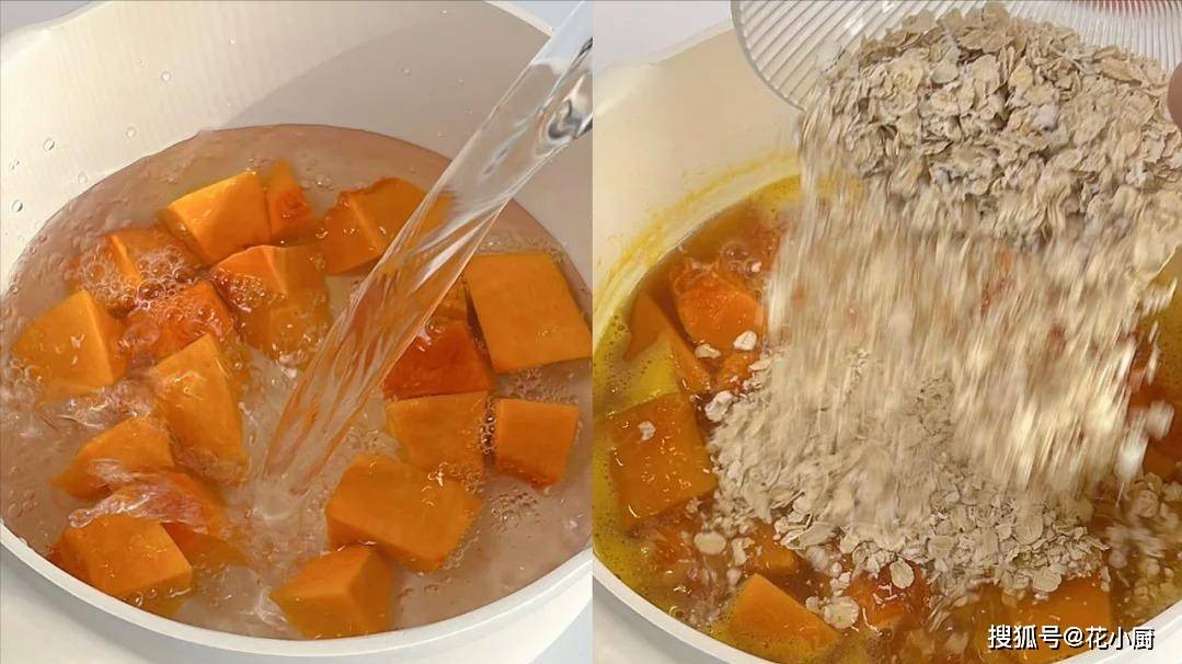 2、煮南瓜的时候,咱也别闲着,可以去把燕麦片准备好。等南瓜煮得差不多了,就把适量的燕麦片放进锅里。这里的 “适量” 嘛,就看你自己的食量啦,喜欢吃燕麦多一点的就多放点,喜欢南瓜味重一点的就少放点。放好燕麦片后,用勺子搅拌搅拌,让燕麦片和南瓜充分混合在一起。然后盖上锅盖,再煮个 5 分钟。