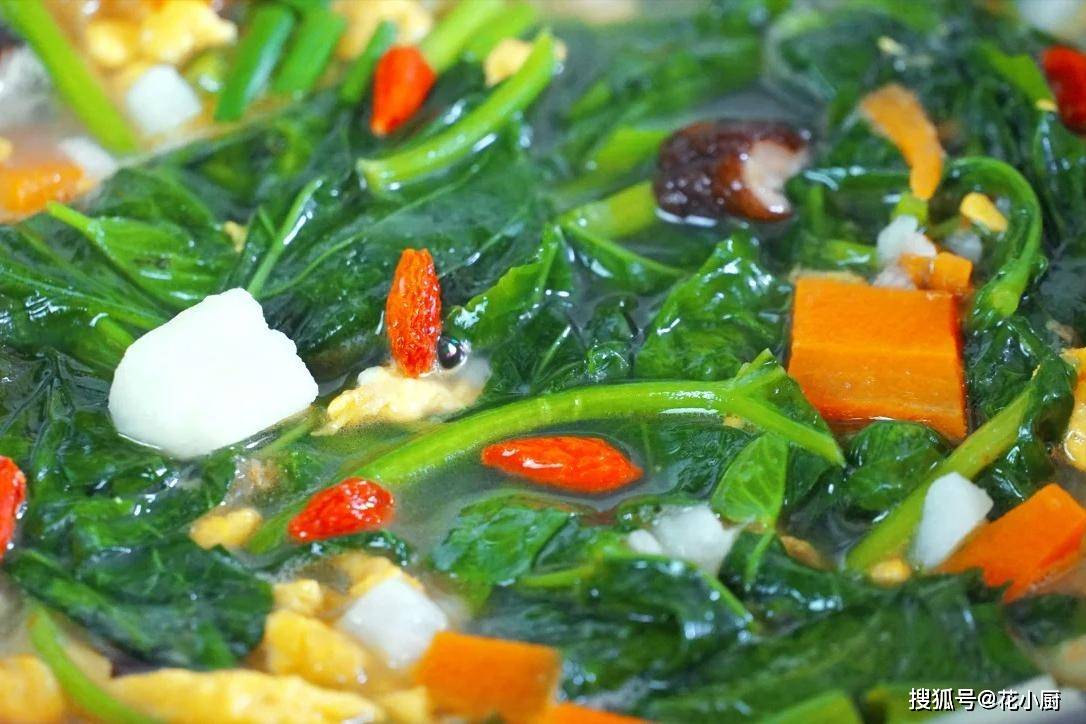 时间一到,关火。出锅之前,撒上一把小葱花,再抓上几颗枸杞,嘿,这一锅好喝的蔬菜汤就大功告成啦!