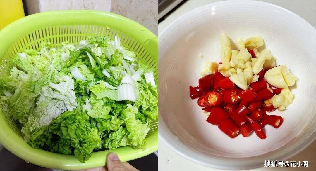 3、锅烧热倒上花生油。油热后,把切好的小米辣和蒜蓉放进去。这一放进去,那香味 “嗖” 地一下就出来了,感觉整个厨房都香飘飘的。接着把切好的大白菜倒进去,开始一顿爆炒。炒的时候用铲子多翻翻,让每一片白菜都能沾上调料的香味。炒着炒着,你就会发现大白菜慢慢变软了,颜色也变得更翠绿了。