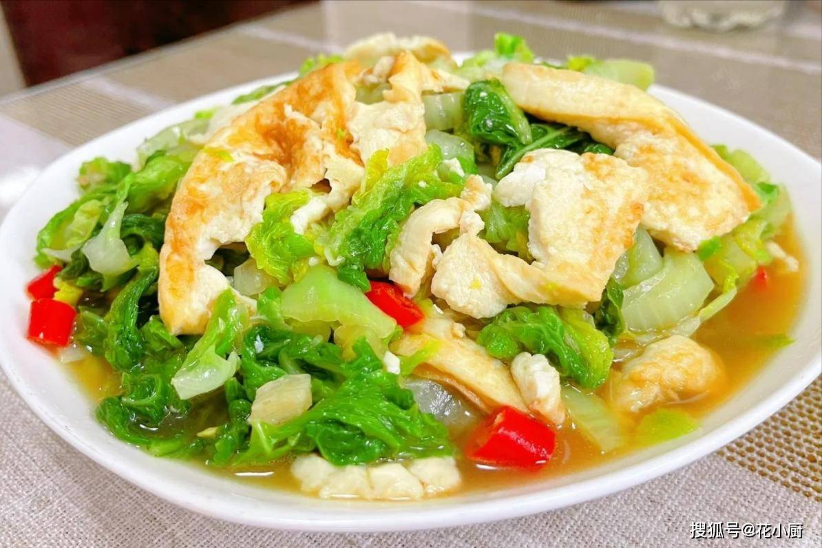 你瞧瞧这盘白菜炖豆腐,白的豆腐,绿的白菜,红的辣椒,颜色搭配得那叫一个好看。