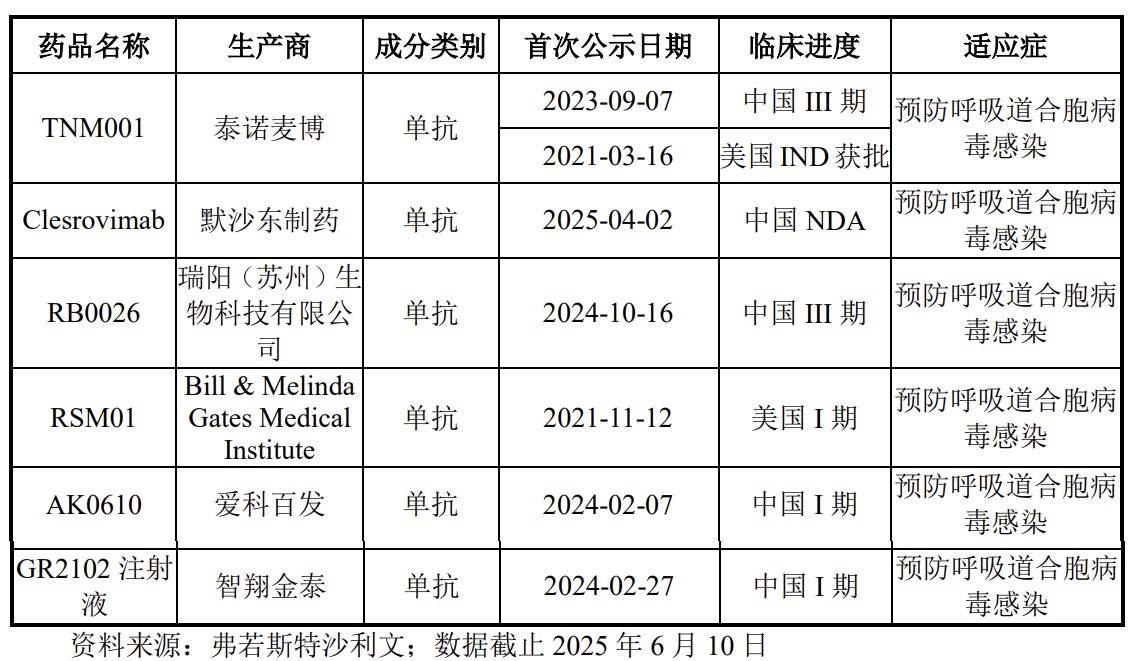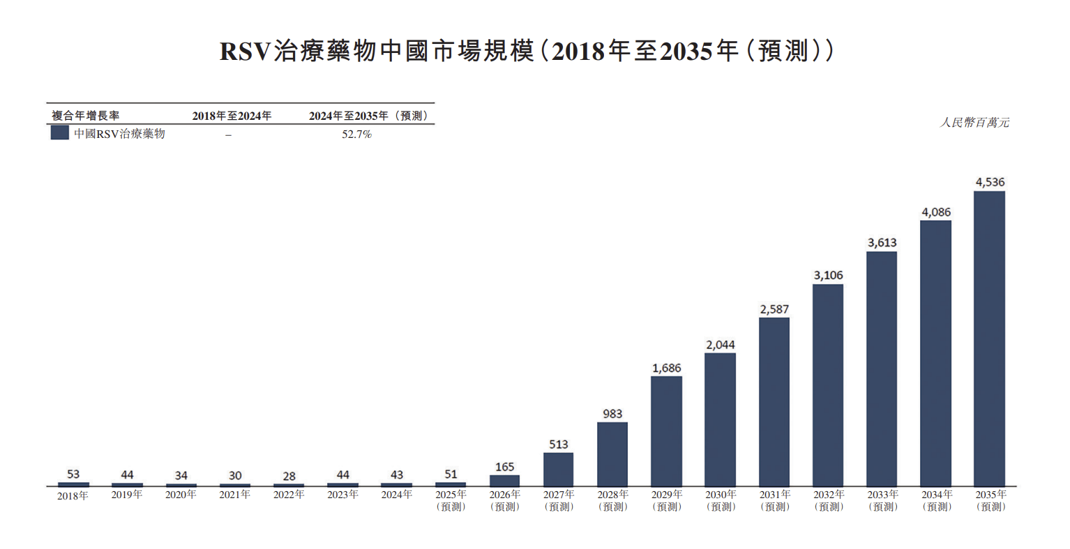 据灼识咨询报告数据,2024年全球RSV预防药物市场(不含RSV疫苗)规模约27亿美元,预计2035年将达到53亿美元,在中国市场,随着更多预防产品的预期上市,国内RSV预防药物市场预计自2025年起将逐步扩大。