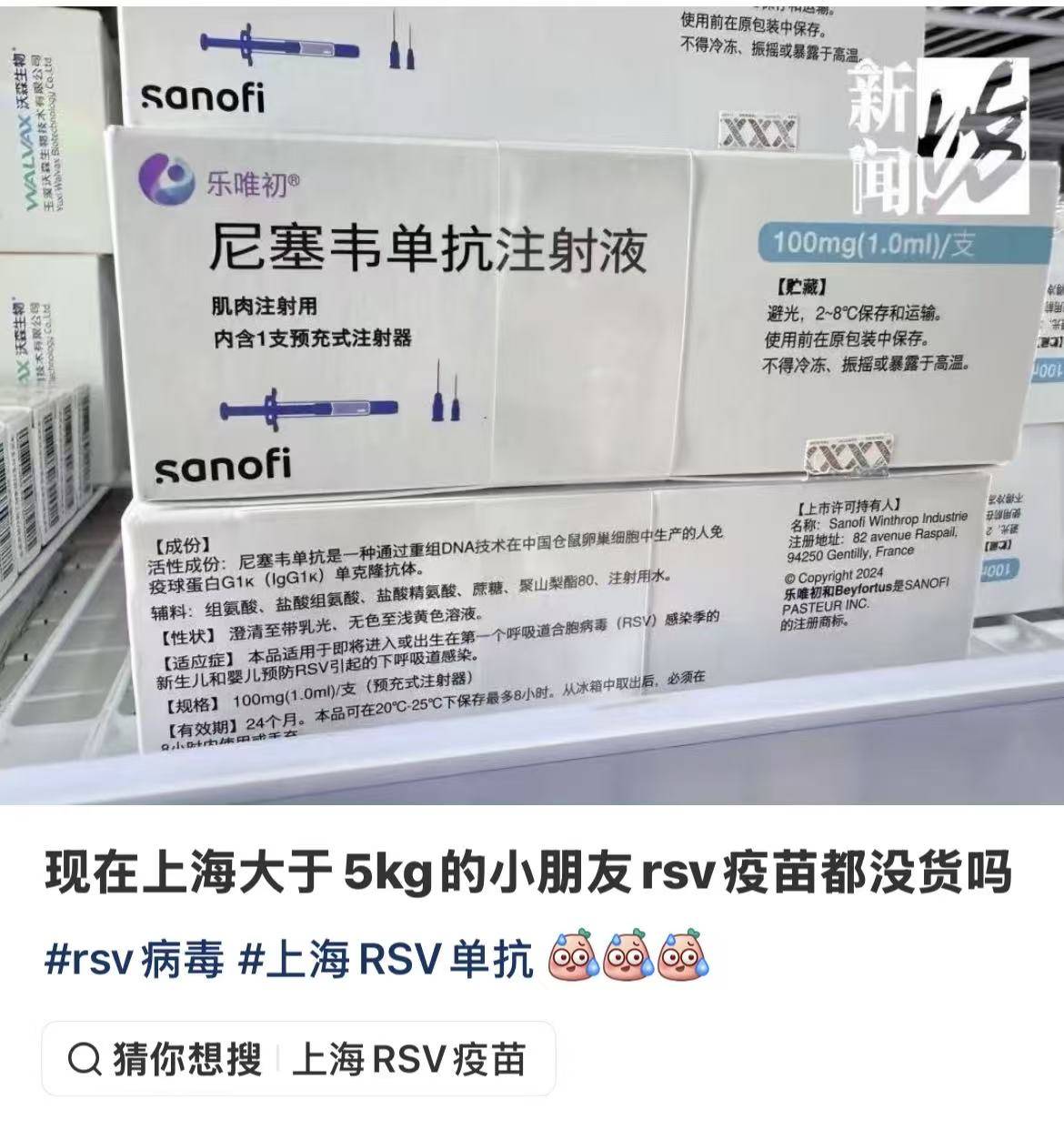 日前在小红书等社交平台上,不乏家长发布笔记提及孩子需接种尼塞韦单抗却遭遇缺货的情况。