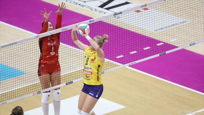 整场比赛中,科内利亚诺的拦网体系在第三局逐渐恢复,为他们的反击提供了支撑。朱婷虽然进攻成功率仅为31%(26扣8中),但她在防守端的表现异常突出,全场接一传最多,且到位率高达62%,展现了非常高的防守稳定性,成为球队的重要防线。此外,哈克在进攻端的超强表现(57扣31中,获得34分)也为球队逆转奠定了基础,两人形成了“攻守双核”的强大组合。