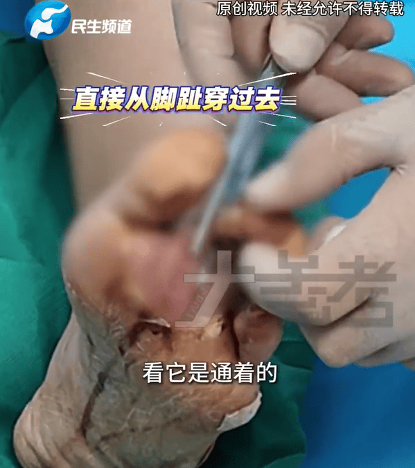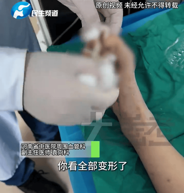 河南省中医院周围血管科副主任医师袁向科在给小张清创时表示:“你看全部变形了,都不像个小孩子的脚指头。”