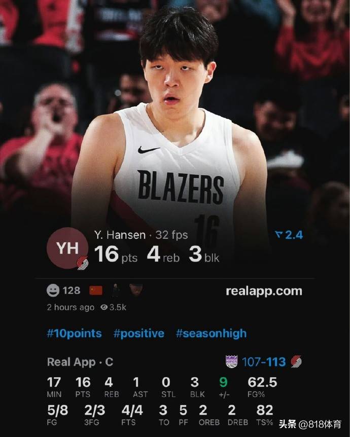 10月11日结束的NBA季前赛中,波特兰开拓者在主场以124-123险胜萨克拉门托国王。本场比赛,杨瀚森出战17分钟,8投5中,贡献16分4篮板1助攻,三分线外两记命中,罚球4中4,正负值为 9,成为球队得分第三高的球员。
