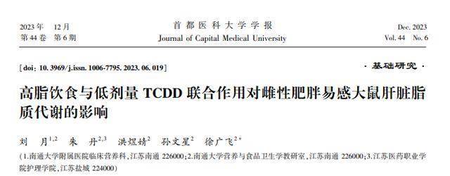 [1]刘 月,高脂饮食与低剂量 TCDD 联合作用对雌性肥胖易感大鼠肝脏脂 质代谢的影响,首 都 医 科 大 学 学 报,2023-12-13