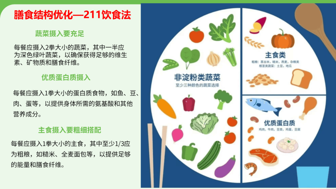 三是调整生活方式:饮食用“211餐盘法”(2份蔬菜、1份优质蛋白、1份主食),少盐少糖; 推荐地中海饮食模式,以植物为主,健康脂肪: 每周至少3次中等强度运动,每次30分钟; 保证睡眠,别熬夜;压力大时试试“478呼吸法”(吸气4秒、屏息7秒、呼气8秒);