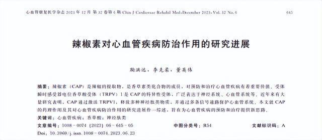 [1]鞠洪远,李克柔,董英伟.辣椒素对心血管疾病防治作用的研究进展[J].心血管康复医学杂志,2023