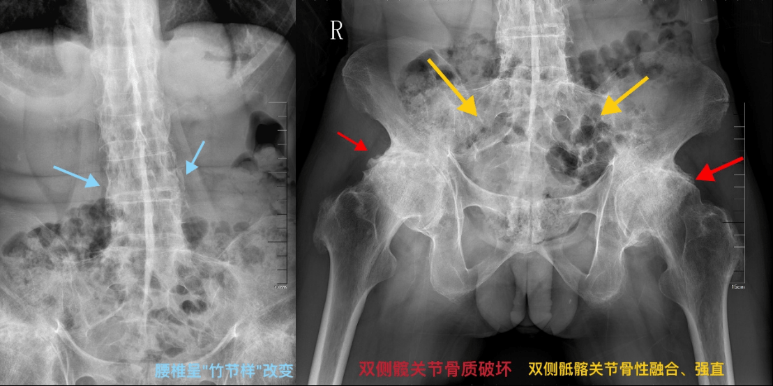 疾病通常从骶髂关节开始,逐渐向上蔓延至腰椎、胸椎乃至颈椎。若不及时控制,长期炎症会导致韧带骨化、脊柱融合,最终使脊柱如“竹节”般僵硬,丧失活动度,形成驼背等畸形。