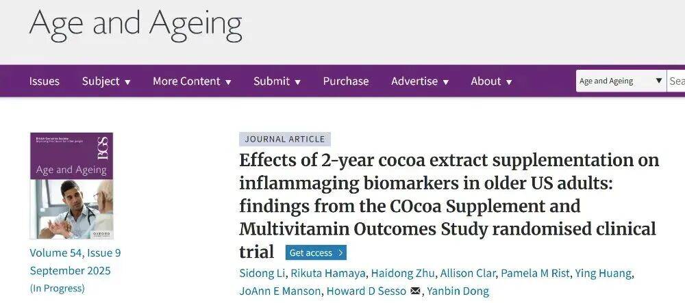 营养干预日益成为延缓炎症性衰老的潜力方案。最近一项新研究证实,富含黄烷醇的可可提取物补充剂能降低老年人血液中的关键炎症指标,这表明它在保护心脏方面具有重要作用,也进一步证实了富含黄烷醇的植物性食物对于延缓炎症性衰老的潜在价值。