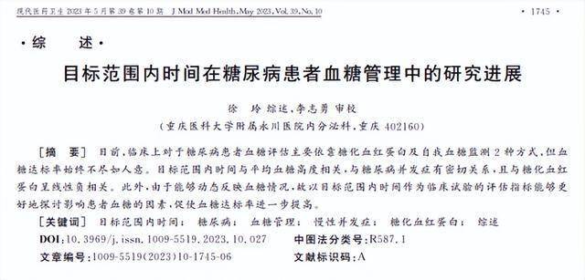 目标范围内时间在糖尿病患者血糖管理中的研究进展,徐玲;李志勇,现代医药卫生,2023-05-30