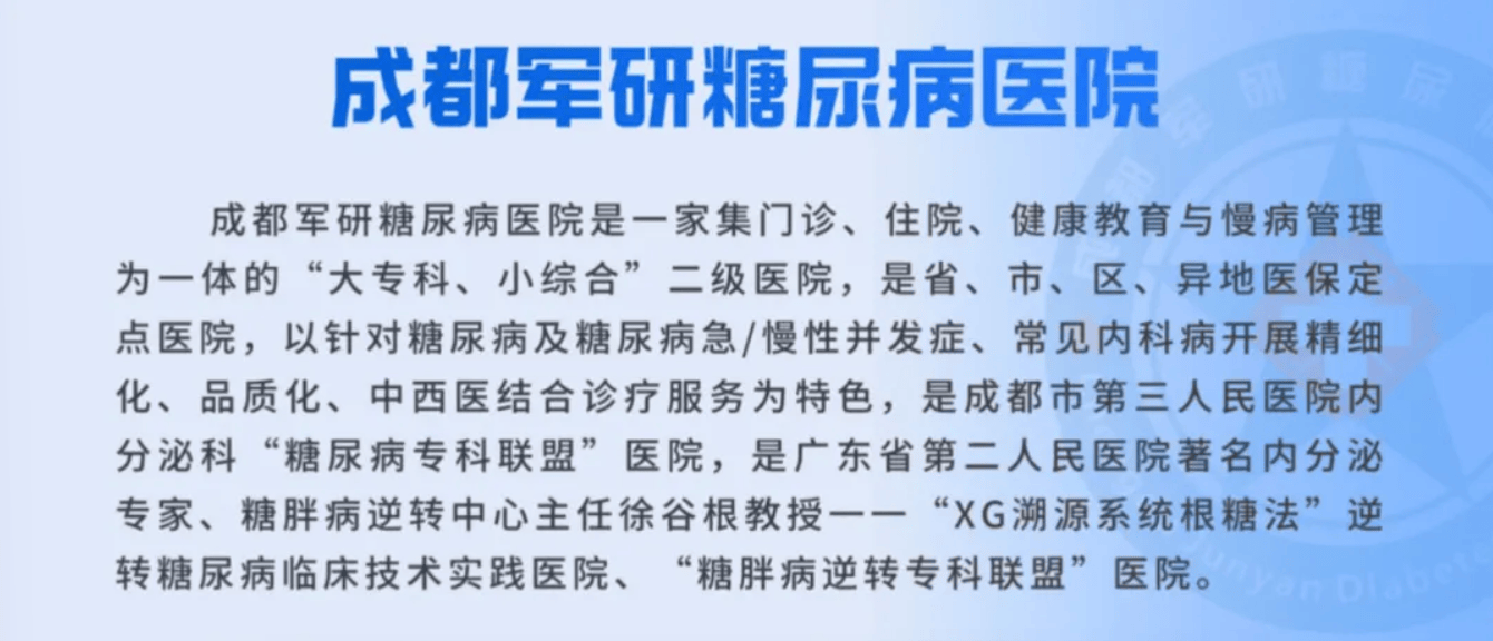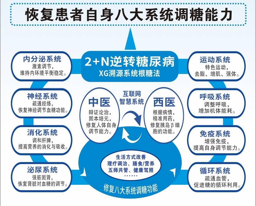 如果你发现自己基本满足这四个条件(尤其是后三个),那么恭喜你,你具备了实现糖尿病逆转的良好基础!接下来你需要选择专业的医疗机构和治疗团队进行全面评估,采用XG溯源系统根糖法制定个性化的2+N逆转治疗方案,开启你的科学逆转糖尿病之旅!