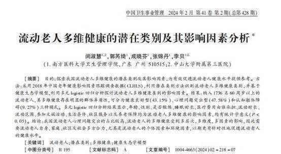 [1]闵淑慧.流动老人多维健康的潜在类别及其影响因素分析,中国卫生事业管理,2024-02-15