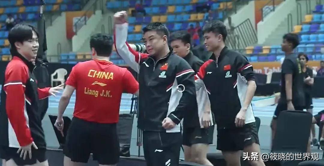 当中国队最终实现逆转时,国乒教练王皓做出了一个充满力量的举动:他面对张本智和的方向挥拳庆祝。这不仅是对队员们顽强拼搏的肯定,也是对张本智和一系列争议行为的有力回应。